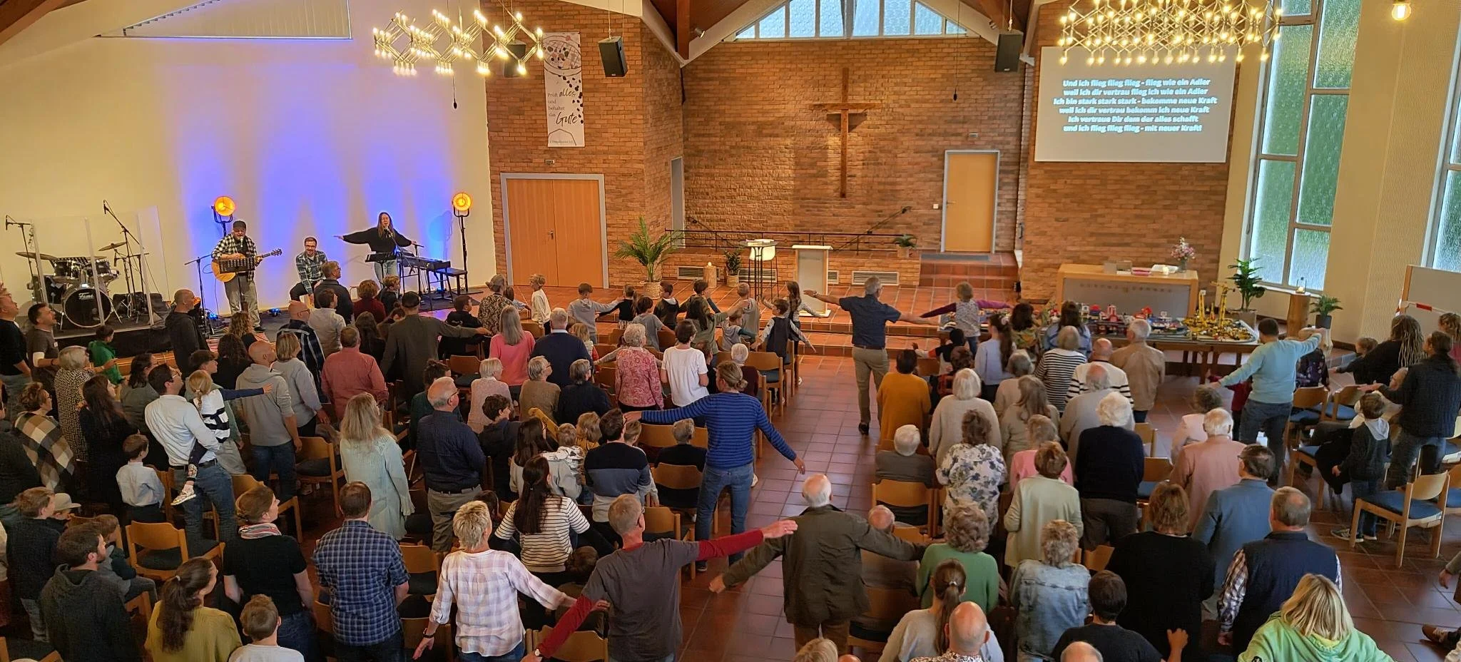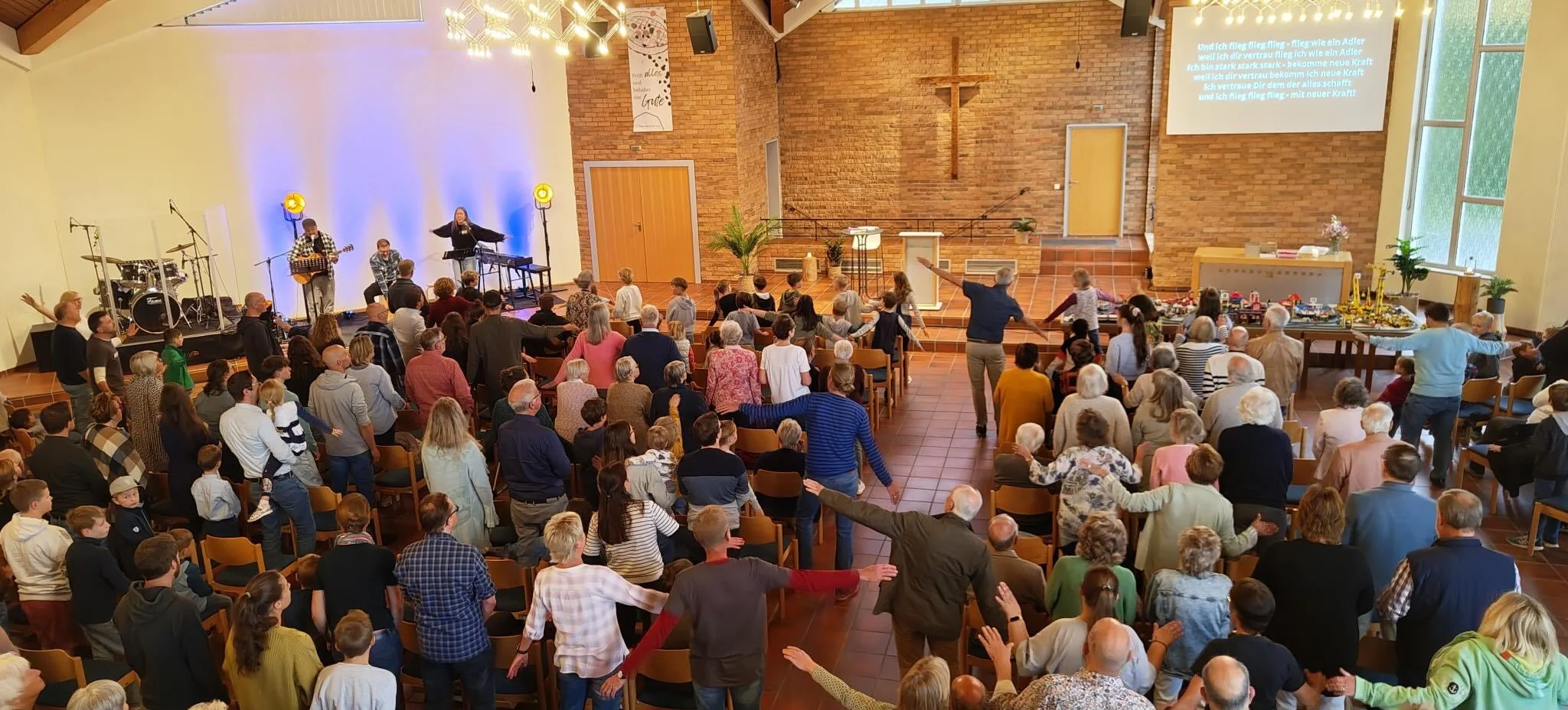 Ganz im Sinne der LEGO®-Stadt haben wir uns auch nach dem LEGO®-Gottesdienst mit dem Bauen beschäftigt. Wir haben die Fertigstellungen der Renovierungen unseres Gemeindehauses gefeiert. Das Planen, Bauen und Gestalten mit den vielen helfenden Händen lag an diesem Sonntag im Fokus. Nach einem festlichen Rückblick der Bauzeit, einem gemeinsamen Dank-Sammeln hat sich ein reichhaltiges Mittagessen und ein buntes Treiben auf unserem Gelände angeschlossen. Mit Popcorn, Spielmobil, Hüpfburg. Rätsel-Rallye durchs Haus und Kletterturm ging dieses Fest fröhlich zu und mit so vielen Gästen und Beteiligten zu Ende.