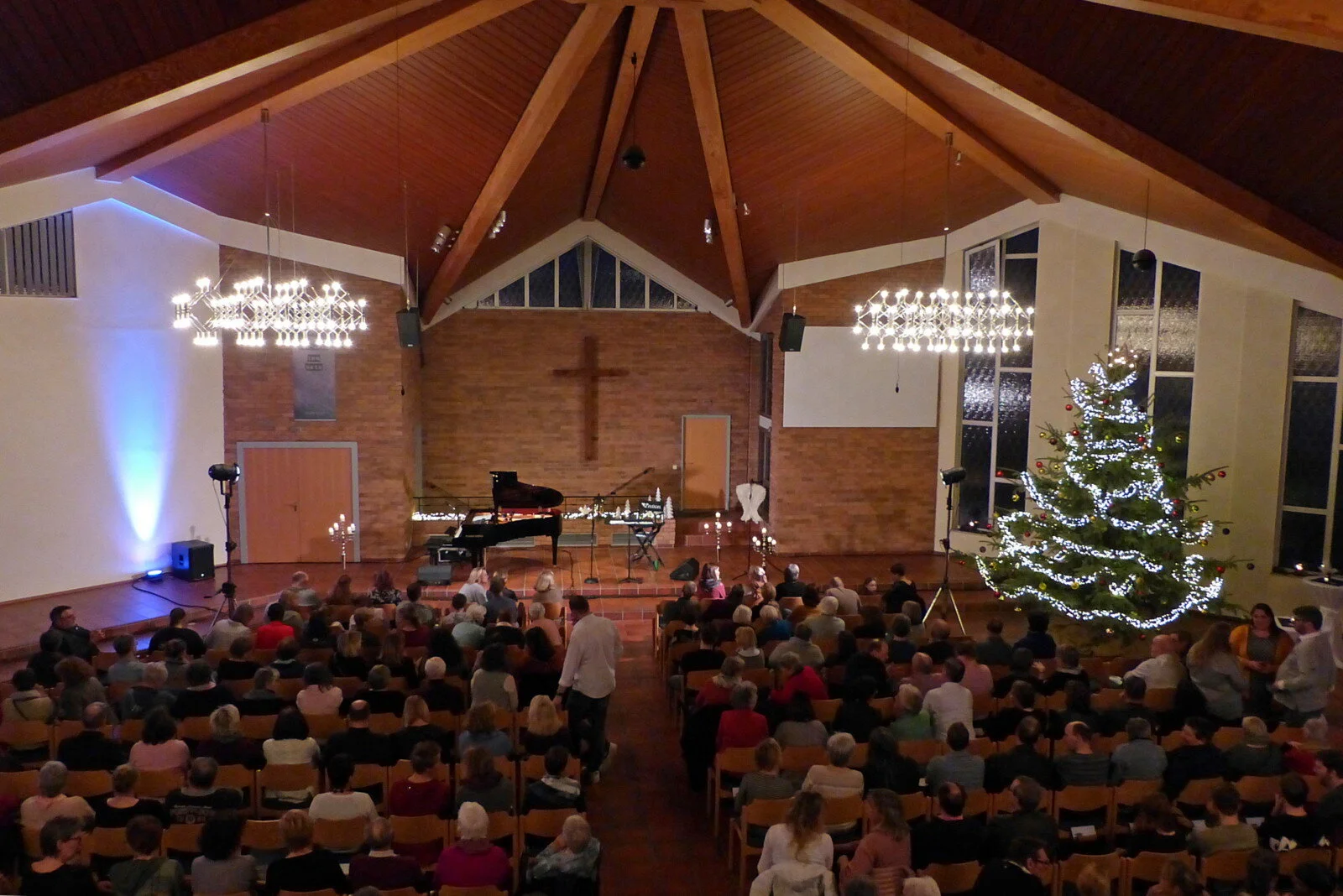 Das Ensemble 2Flügel war ja nicht zum ersten Mal bei einer brotzeit in unserer Gemeinde. Ganz konkret gesagt waren Christina Brudereck und Benjamin Seipel sogar die ersten, die bei dieser Veranstaltungsreihe zu Gast waren. Wiedersehn macht Freude, das traf auf Akteure wie auf Anwesende zu. Das Programm von 2Flügel ist ja sehr vielschichtig, Benjamin Seipel spielt sehr virtuos Klavier, zum Teil solo, zum Teil als Begleitung zu Christina Bruderecks Sprachbeiträgen, die ein Mix aus Lyrik, Kabarett und selbst erlebten Geschichten sind. Hinzu kommen noch Improvisationen über bekannte Weihnachtslieder oder auch Inspirationen. Man fängt an, Themen mal aus einer anderen Perspektive zu sehen. Oder vielleicht erging es einem auch schon mal selbst so…